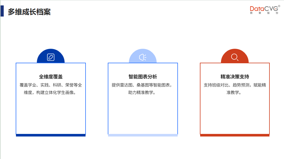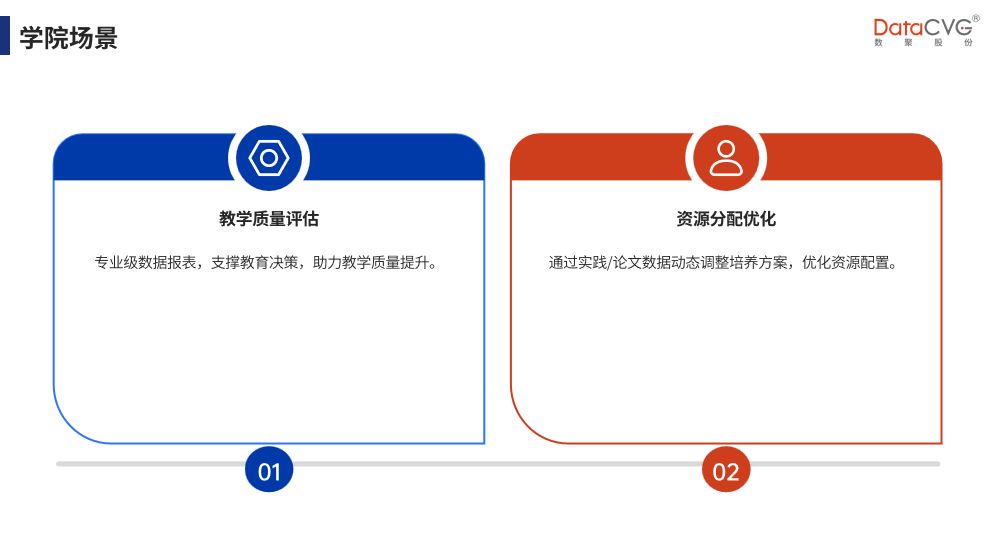 对教学过程数据(课堂互动、评教结果、考试数据)和科研数据(论文发表、专利申请、项目立项、成果转化)进行深度挖掘,分析教学方法有效性、课程体系合理性、科研团队协作效率、科研方向发展潜力等。为高校教学改革、学科建设、科研管理提供关键决策信息,助力制定科学的教育发展规划和科研激励机制,为高校数字化转型与内涵式发展提供强有力支撑。